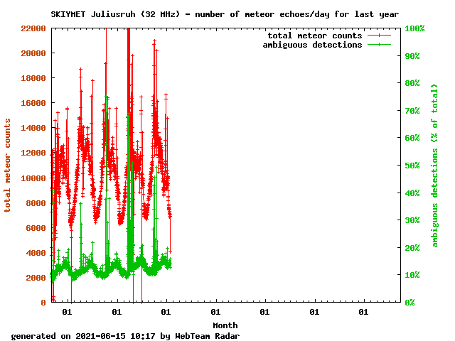 Данные по радиометеорам за последний год (Андоя (Andoya), Норвегия, 69° N и 16° E), 32.55 МГц: